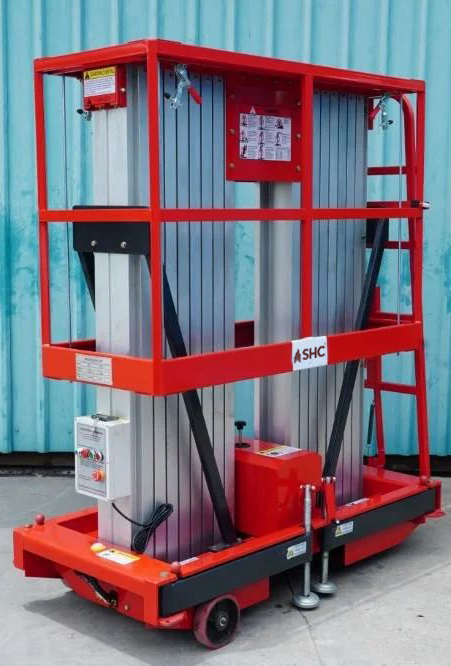 Featuring two parallel vertical masts, the platform achieves enhanced load distribution and structural balance, resulting in superior stability and safer operation while working with heavier loads at higher elevations. Equipped with durable wheels or casters for smooth mobility, these platforms are well suited for industrial maintenance, installation, and repair tasks, even in confined or hard-to-reach areas.